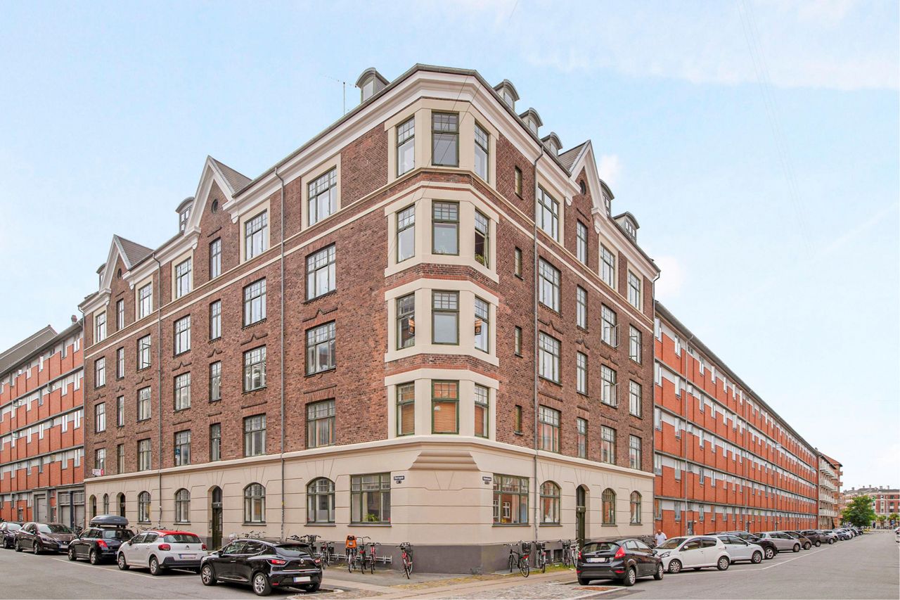 Denne herskabslejlighed er indbegrebet af den sjæl, som så mange bliver tiltrukket af på Nørrebro. Opført i år 1913 har både lejligheden og nærmiljøet masser af historie med sig, hvilket kan ses på den klassiske byggestil og ligeledes på området, der omfavner lejligheden. Boligen er indrettet med tre regulære rum med to stuer en suite og et egentligt soverum, et køkken, et badeværelse og en entré, der muliggør en større fornemmelse af rummelighed i hjemmet.