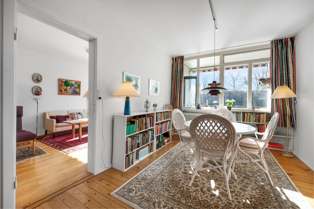 Placeret på førstesalen ligger den så, den 81 m2 store treværelses lejlighed, der åbner sine døre til en