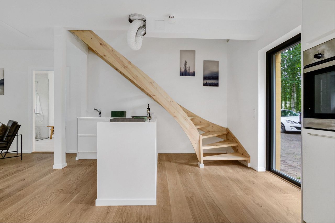 Indvendigt byder boligen på veludnyttede kvadratmeter fordelt på to plan. På stueetagen modtages man af
