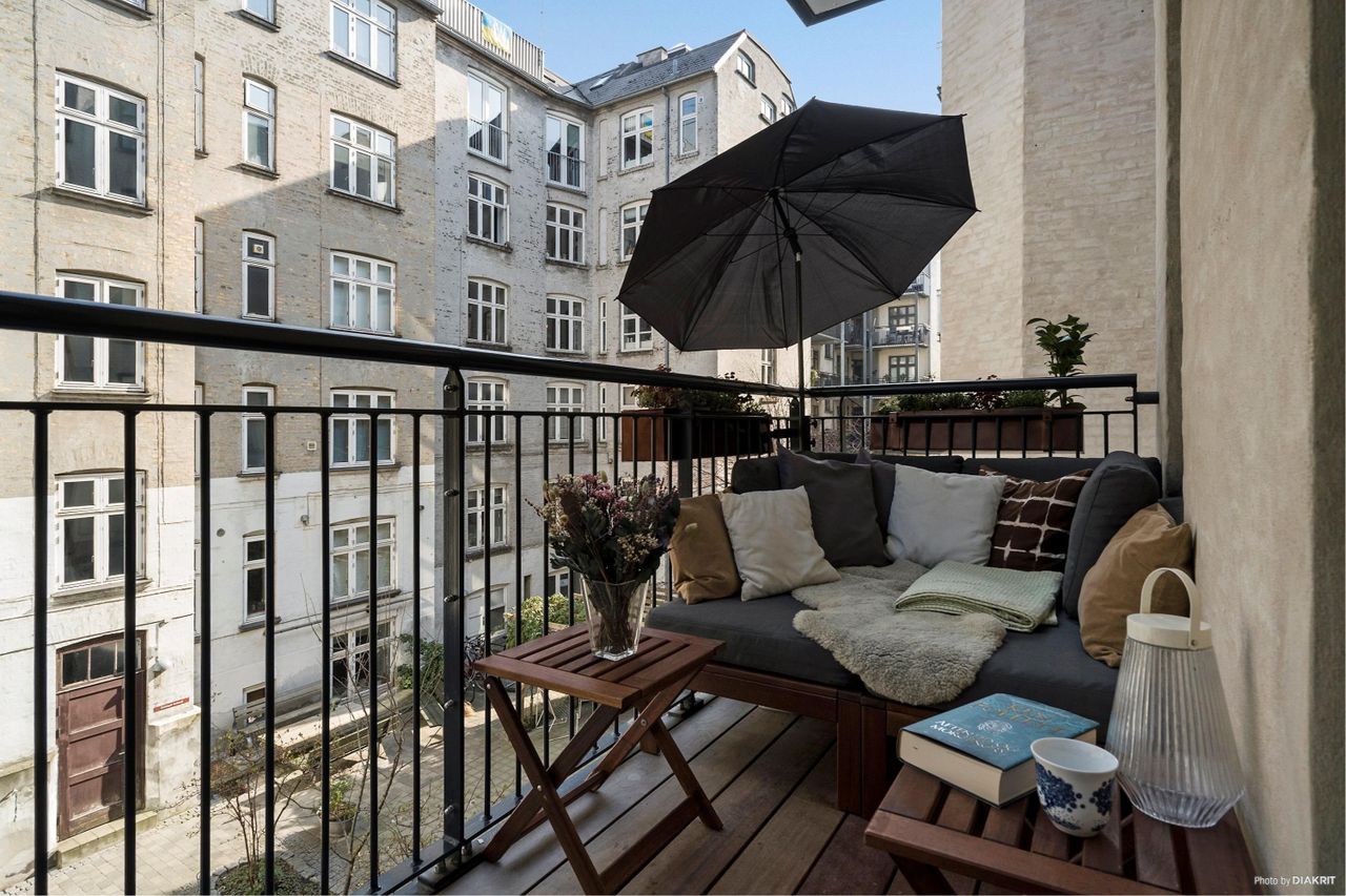 Attraktiv og højloftet lejlighed med altan i Kunstnergaden Rørholmsgade.
