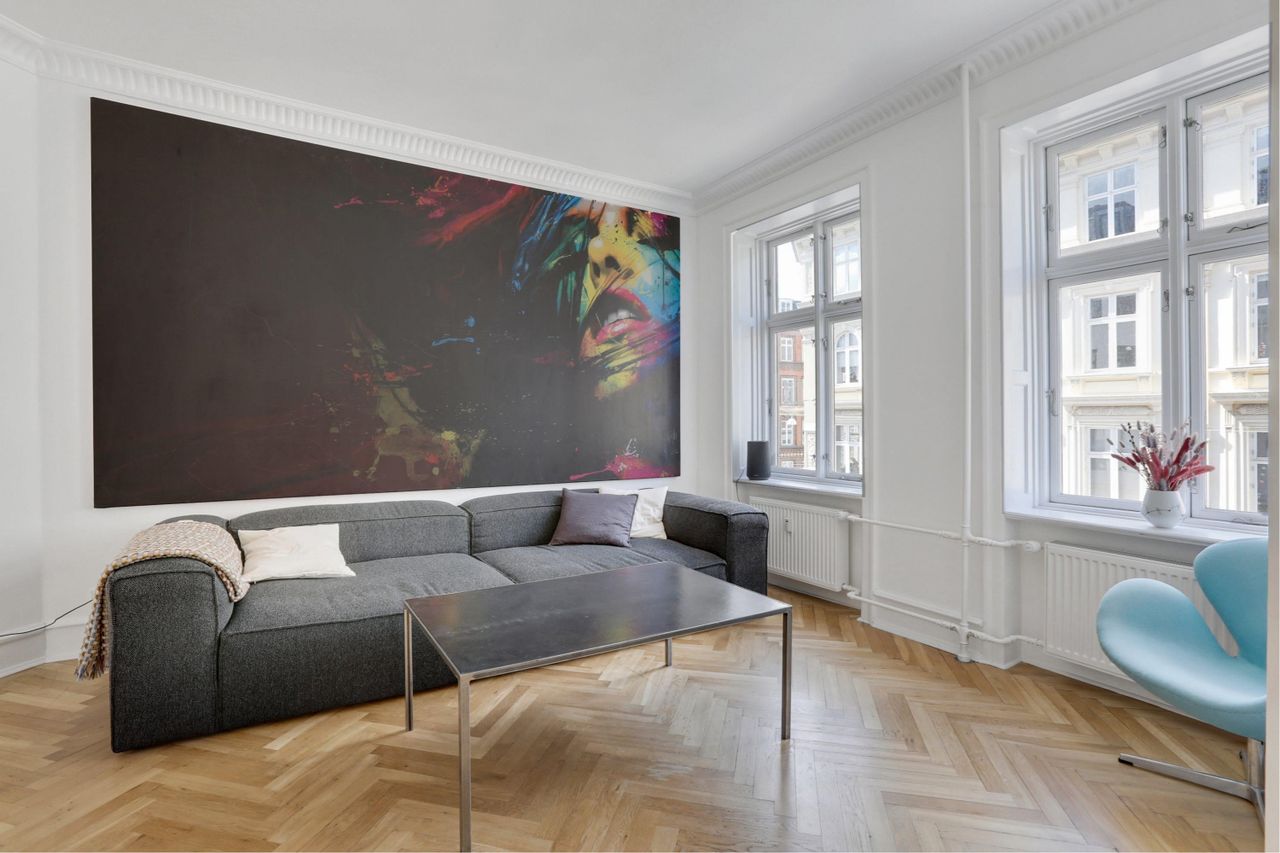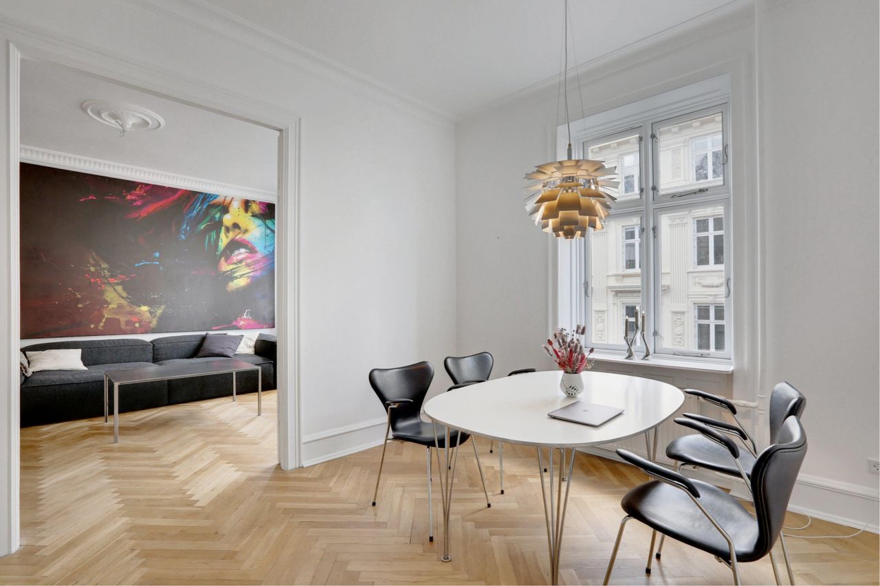 skaber en rød tråd til lejlighedens indre charme. Her kan I, udover den sublime beliggenhed, glæde jer