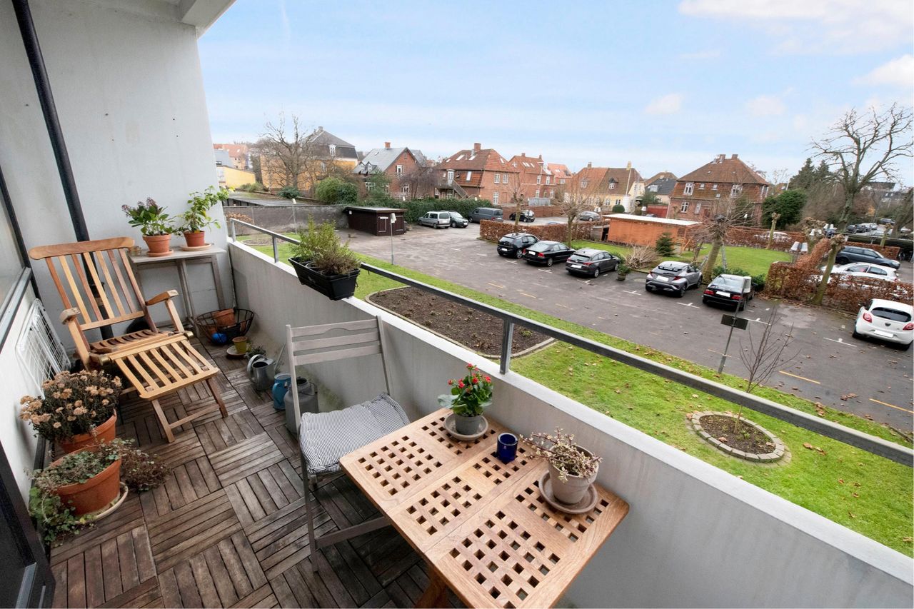 toværelses lejlighed helt uden spildplads, i rigtig god stand og med sydvendt altan.